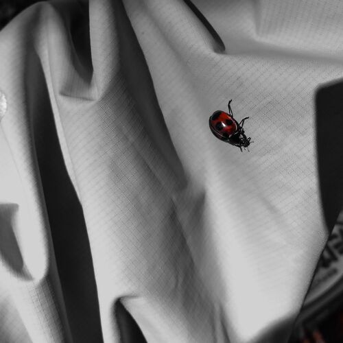 シソみたいな色で、傘がいくつか重なってる草。 傘の間に小さな花が咲いてるよ。 この時期そこらじゅうで見られるディスカバリー。